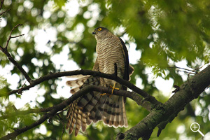 国内で観察できるタカの中では、最も小さいツミです。1980年代半ば以降、都市部での繁殖が多く観察されるようになってきています。一時個体数が増大傾向を見せたものの、近年その傾向に鈍化が見られるという観察報告も目にしたことがあります。少なくとも、都市化に順応できつつあるタカということはできそうです。比較的高い樹木の冠部に営巣しますので、都市部でも、ある程度の広さを持った林のある公園、神社、仏閣などが繁殖場所として使用されています。