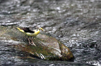 山水のたばしる岩に来し鳥の 黄の鶺鴒はたちまち飛びぬ
