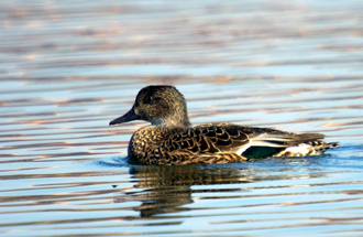 ヨシガモのメスはご覧のようにとても地味な色彩ですが、翼鏡が緑であること、嘴が黒いこと、頭部が丸く、中には上右写真の個体のように頭頂部が平らに見えるものもあることが特徴です。ただ他のカモのメスと異なるのは、胸部から背中にかけて大きな鱗模様があることです。このような模様が大きくはっきりと入ったカモのメスは、このヨシガモだけです。
