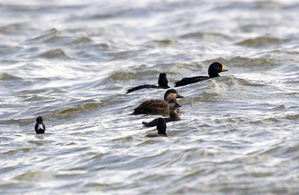 なかなか容易に観察できるカモではありませんが、関東地方以北の海辺に行かれる機会があれば、寒風にさらされた海岸で荒波の上下する冬のダイナミックな景色の中でクロガモの群れを探してみることも一興ではないでしょうか。