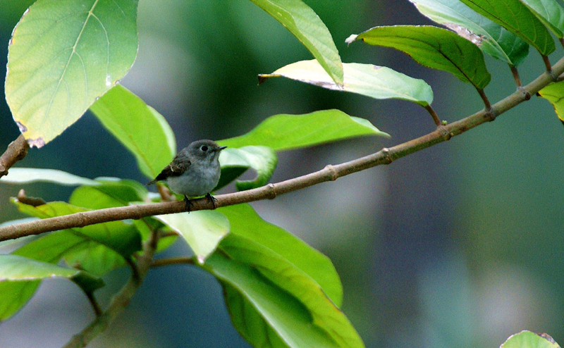 コサメビタキは、スズメよりも小さい13㎝ほどの小柄な、森というより林の野鳥です。インド、マレー半島、フィリピン、中国南部やボルネオで越冬、日本列島、カラフト、中国東北部で繁殖活動をします。繁殖は山間部です。そこへ行く途中の春先や、繁殖を終えて越冬地へと向かう途中に、都市部の公園の休息をとり海を渡って行きます。ですから、都市部に住んでいるバーダーにとっても、さほど遠出することなく非繁殖期には観察できる野鳥でもあります。私の場合ですと、春秋には以前住んでおりましたさいたま市内の秋ヶ瀬公園や氷川神社の境内で毎年観察できました。また、繁殖期には長野県戸隠森林植物公園で、若葉茂る森の中で見かけることもできました(下右の画像.この個体は囀っていますのでオスでしょう。縄張りを主張しているのでしょうか、メスを魅了しようとしているのでしょうか。6月下旬の撮影です)。また、香港の新界地、沙田(サーティン)の公園で、越冬中の個体にも遭遇できております。一番下、右側の画像がそれです。こうして、幸運にも、渡りの途中の中継地、繁殖地、越冬地の3ポイント全てで観察できている数少ない野鳥でもあるのです。