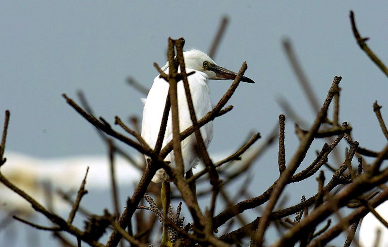 クロサギといっても、個体差があり上左の様に白いクロサギ(白色型)もいるのです。嘴の形状、色そして脚の形状と色をよく観察すればシラサギの仲間と間違えることはなさそうです。クロサギの方が嘴も脚もともに短く、がっしりとした印象を受けます。とはいっても、シラサギの仲間と混在していますと見過ごしてしまいます。上左の個体は、九十九里浜のシラサギ類とゴイサギの巨大な集団営巣地にいた一羽ですが、危うくシラサギの仲間として見過ごしてしまうところでした。