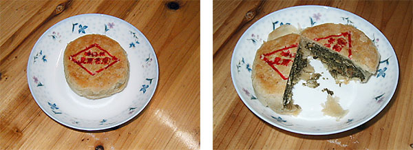 今年(2005年)9月18日は旧暦の8月15日、十五夜でした。日本では、快晴に恵まれ各地で満月を見ることが出来たようですが、ここ長安ではあいにくの曇り空で、満月を望むことは出来ませんでした。アジアの多くの国ではこの日を特別な日としてその国独特のやり方で迎えますが、中国ではこの日を中秋節と呼び、月餅を贈り贈られ家族と共に食べて健康や安全を祝うのです。私もいくつか頂きましたので、食べてみました。今回はその月餅について報告します。中国は広いので、月餅の味や形・内容も地方によって異なるようです。今回は広東省以外に上海の月餅も入手できたのでそれも交えて報告します。 1.上海空港にて購入した物 上海空港で見つけたものは今まで広東省で見てきたものとは外観が全く違っていました。周りの皮は薄い層になっていて、ぱりぱりと乾いた物です。中の餡はかぼちゃの種、胡桃、落花生、ゴマ、などの実が大変甘い餡に混ざっており、かなり歯応えのあるものでした。写真では濃い緑に見えますが、抹茶味でした。白餡も同様に大変甘く、各種の実が入っています。 2.広東省で入手した物 こちらは広東省で入手した物で、以前にも食べたことがありますが、皮はしっとりとしたもので、かなり脂ぎっています。餡はハスの実の白餡(甘い)に塩漬けの卵の黄身が入っています。餡の甘さはそれほど強くないのですが、油が強い為にかなり濃厚に感じ、また、卵の塩味と合わさって、かなり甘く感じます。 こちらも同じ広東省のものですが、少し高級で卵の黄身が二つ入っています。皮、餡、共に少し固めに仕上がっていました。カメラの色補正のかかり方が違って、写真では実際のものより、少し黒っぽく見えています。 中国ではこの月餅を配る習慣が大変根強く、日本の中元、歳暮に匹敵するような物です。取引先会社からたくさん受け取り、それを社員に配分したり、また、会社でも社員のために特別に作らせたり、購入してきて配ります。一般にも、友人同士で贈り贈られます。デパートでは家族に買い求める人も大勢いました。最近では宅配便が発達したので、ふるさとを離れて仕事をしている人の多い広東省では、デパートの無料配達サービスなどを利用することも出来ます。聞くところによると、数日から一週間程度掛かるらしいですが。広い中国ならではのことと思います。 最近、中国政府が月餅の過剰包装に歯止めをかけるために国家規格の制定を実施したのは、いかにも見栄えを気にする中国らしいと思いました。一方、不衛生な工場で作られた月餅を食べ、食中毒に掛かる人も毎年大勢いることも報じられています。 今まで、広東省でしか月餅を見ていませんでしたので、中国の月餅はこんな物かと思い込んでいましたが、今回、上海の月餅を見て、さすがに広い中国と改めて妙な感心をしました。来年はもっと地方の月餅を紹介できればと思います。 |