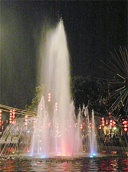 体育センター内の広場に有る噴水もライトアップされていました。周りは提灯飾りで連なっています。この時期の噴水は寒いだけですが・・・