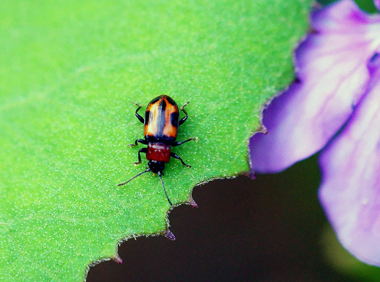 一見、ハムシの仲間のように見えた。橙色の翅に黒い紋様と暗赤色の胸部がよく目立った。キノコや腐った植物を食べるといわれています。翅の紋はテントウムシに似ていますが、形状はとてもテントウムシに似ているとは思えません。