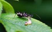 週末の土曜日は、曇り空、夜は雨、日曜日は朝の雨の後、直射日光が強く射し、夕刻から再び雨といった不安定な梅雨空でした。自宅の庭、三波石峡で観察できたムシたちです。 |