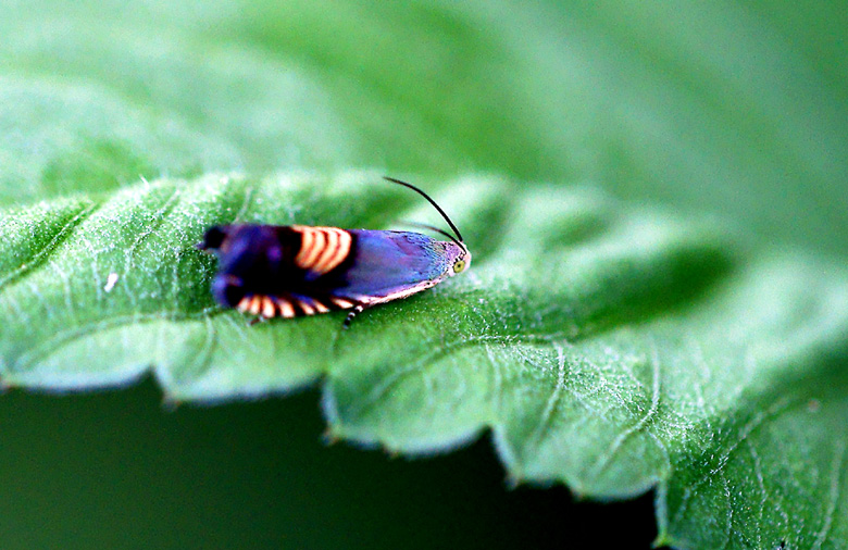 ハマキガの仲間はだいたい同じような形をしていますが、同定は困難なものが多いのですが、このヨツスジヒメシンクイは、前翅に入った特徴的な模様からすぐにそれと分かります。食草はカナムグラといわれています。