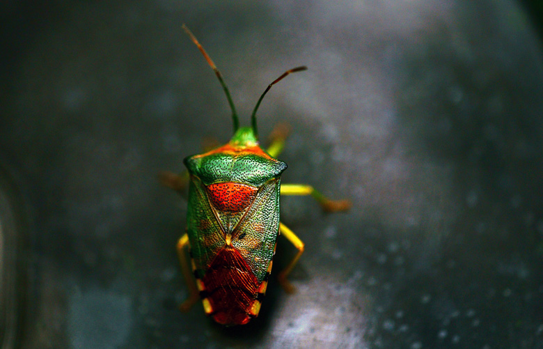 一週間前の埼玉県民の森、ムシ観察でもご紹介しましたセアカツノカメムシです。撮影の角度で、背中の赤さがよく分かりませんでしたので、別の角度での撮影です。背中の三角形(小楯板)のほとんどが、赤というより赤褐色になっているのがお分かり頂けるでしょうか。