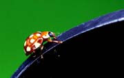 皆さんになじみの深い昆虫の一つが、テントウムシです。どの種類のテントウムシも、半球形をしており、肢や触角が短いのが特徴です。テントウムシは、餌とするものによって分類することも可能です。人の農耕作にとって有害な、アブラムシやカイガラムシの仲間を食べるもの、うどんこ病菌を食べるもの、そして農耕作物自体を食べるもと大きく三分類することができます。ヒトにとって有害か、無害か、有益となるのか、知っておくことも必要かもしれません。 |