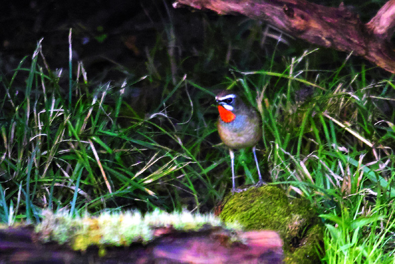 白い眉線と顎線、そして何といってもオスの赤い喉は、よく目立ちます。