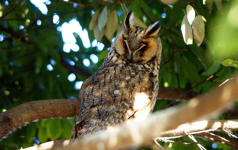 見沼田圃で、トラフズクを見ることができるとは思ってもいませんでした。どうも番だと思われている2羽のうちの1羽で、メスではないかとの別の観察者の意見でした。オスだと思われるもう一羽は、葉陰深くに入り込んで到底撮影できません。
