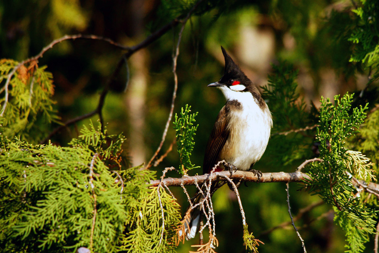 専らヒトの住む居住区域を生息圏とするヒヨドリの仲間です。群れで行動し、かなり澄んだ声でとてもよく鳴くのが特徴です。本来アフリカ、南・東南アジア原産の鳥。ヒトの手によって、オーストラリア、ハワイ、アメリカ本土に移出されかなり繁殖しているとのことです。 無自覚な種の移動が、生態系の破壊になりかねないと問題視されるようになってきたのは最近のようです。