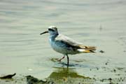 | 4月初旬ともなりますと、日本のはるか南で越冬していた鳥たちがより北の繁殖地へと渡り、その途上に立ち寄ります。先週半ば、暴風が2日間吹き荒れましたが、その影響でしょう。従来はあまり陸に降りない海鳥、ハイイロヒレアシシギが谷津干潟に立ち寄りました。3週連続の谷津干潟です。 |