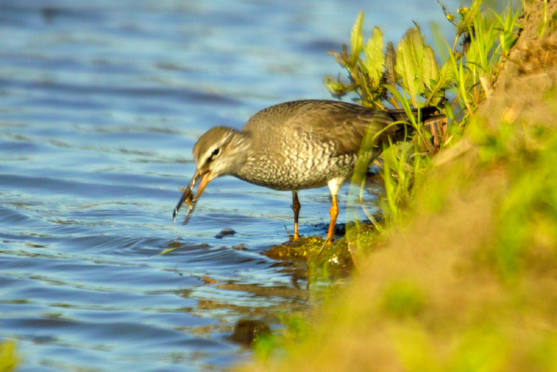 ドジョウを食べるキアシシギです。一般的にシギ・チドリの仲間は、動物食です。